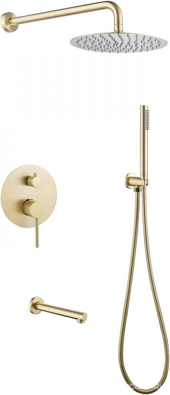 Душ.система встр.в стену: смеситель, стац.верхний душ 25см., шланг, лейка, кронштейн совмещ.с вых воды в компл., излив (цв.матовое золото), ZZ Abber Emotion AF8817G