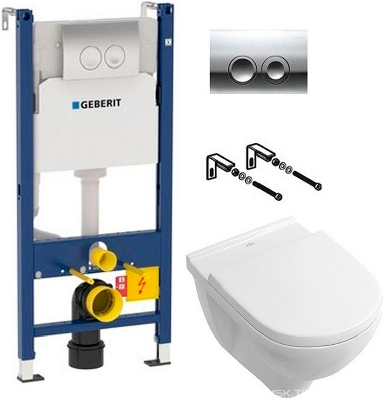 Инсталляция Villeroy & Boch O.Novo Комплект Система инсталляции для унитазов Geberit Duofix Delta 458.124.21.1 3 в 1 с кнопкой смыва| 56x36x35