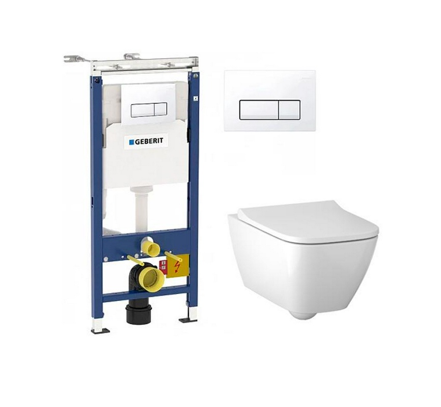 Комплект Инсталляция Geberit Duofix Платтенбау 4 в 1 с белой кнопкой смыва 54x35x33 Geberit smyle square s403647