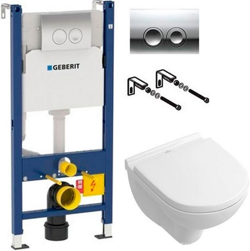 Инсталляция Villeroy & Boch O.Novo Комплект Система инсталляции для унитазов Geberit Duofix Delta 458.124.21.1 3 в 1 с кнопкой смыва| 49x36x34