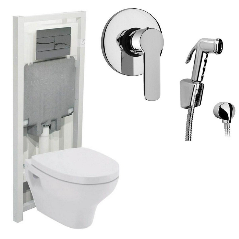 Компл.5 в 1: унитаз подвесной,сиденье с микролифт, инсталляция для подв.унитаза, клавиша смыва цв.хром, к-т встр.гиг смес.душ., Pop, Arona ZZ Sanitana pop art S999661arona