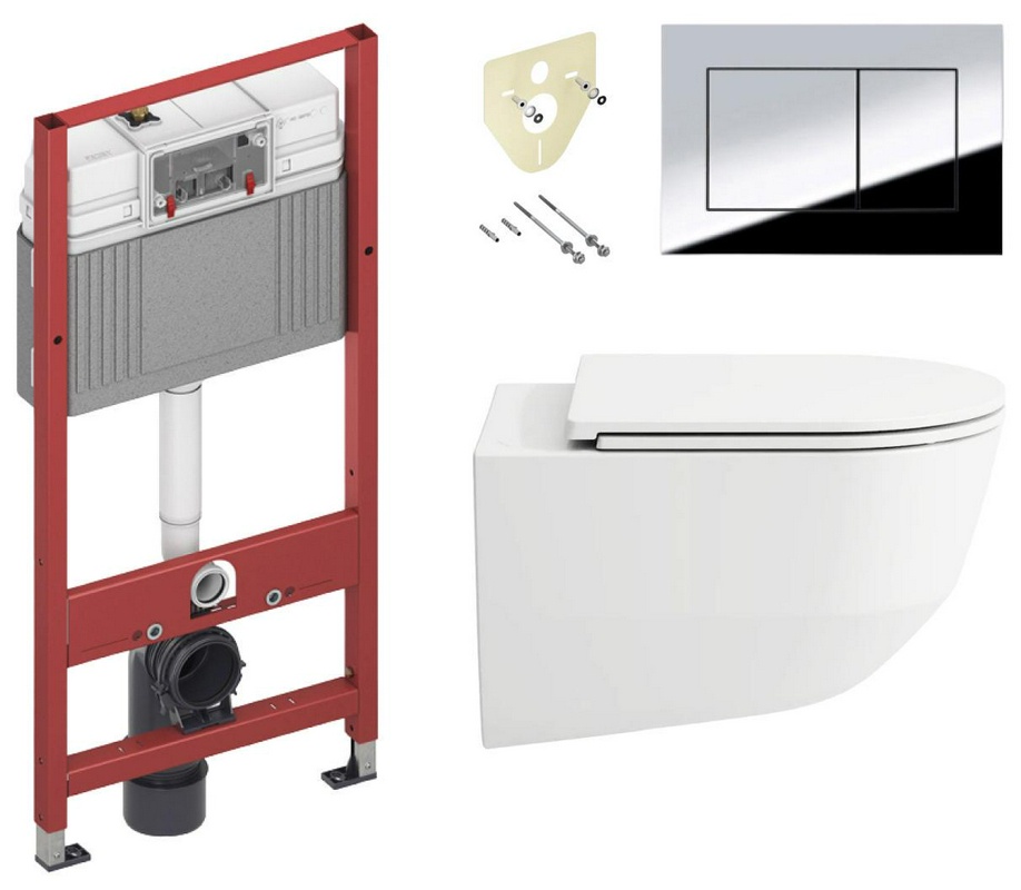 Комплект: унитаз подвесной безободковый, сиденье с микролифтом, инсталляция для подв.унитаза, крепёж, клавиша смыва цв.хром, Genova ZZ