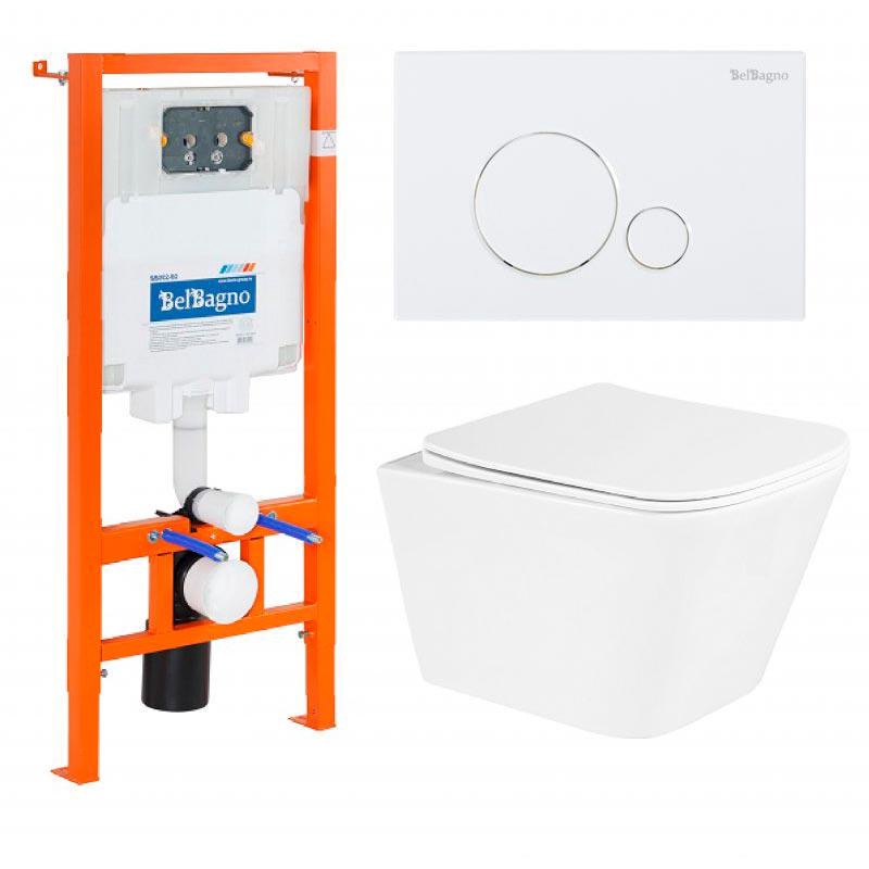 Инсталляция BelBagno Due Комплект: унитаз подвесной безободковый, сиденье с микролифтом, инсталляция для подв.унитаза, крепёж, клавиша смыва цв.белый, Due ZZ