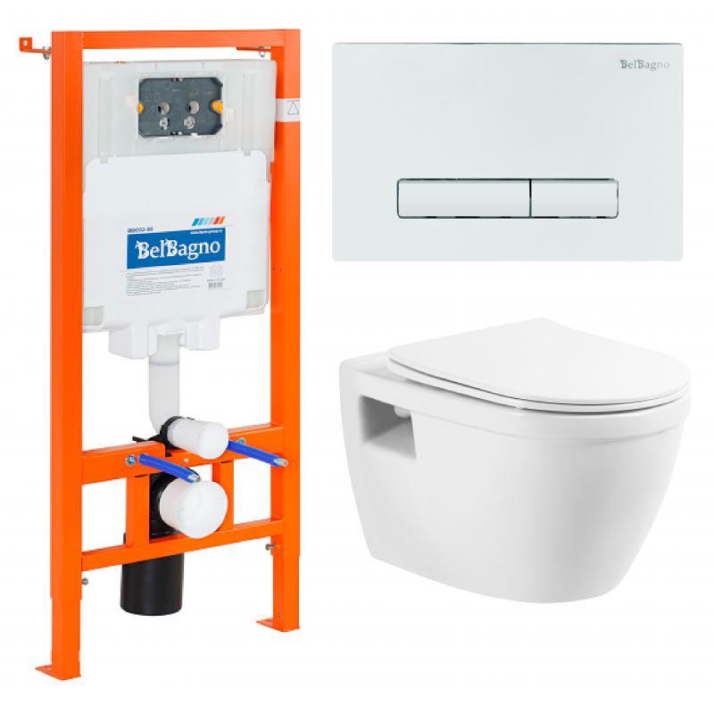 Комплект: унитаз подвесной безободковый, сиденье с микролифтом, инсталляция для подв.унитаза, крепёж, клавиша смыва цв.хром, ZZ BelBagno Loto BB070CHR/SC/BB002-80/BB005-PR-CHROM
