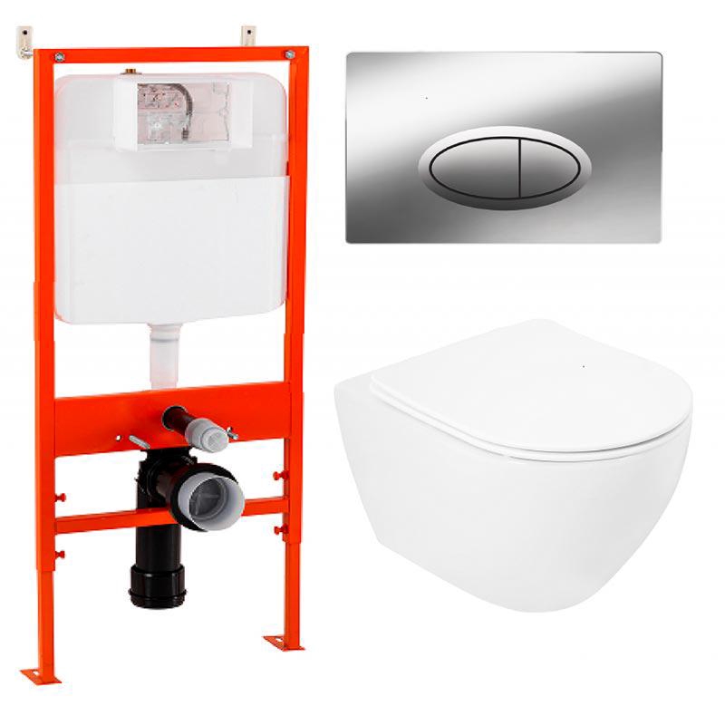 Комплект: унитаз подвесной безободковый, сиденье с микролифтом, инсталляция для подв.унитаза, крепёж, клавиша смыва цв.хром, Onda ZZ