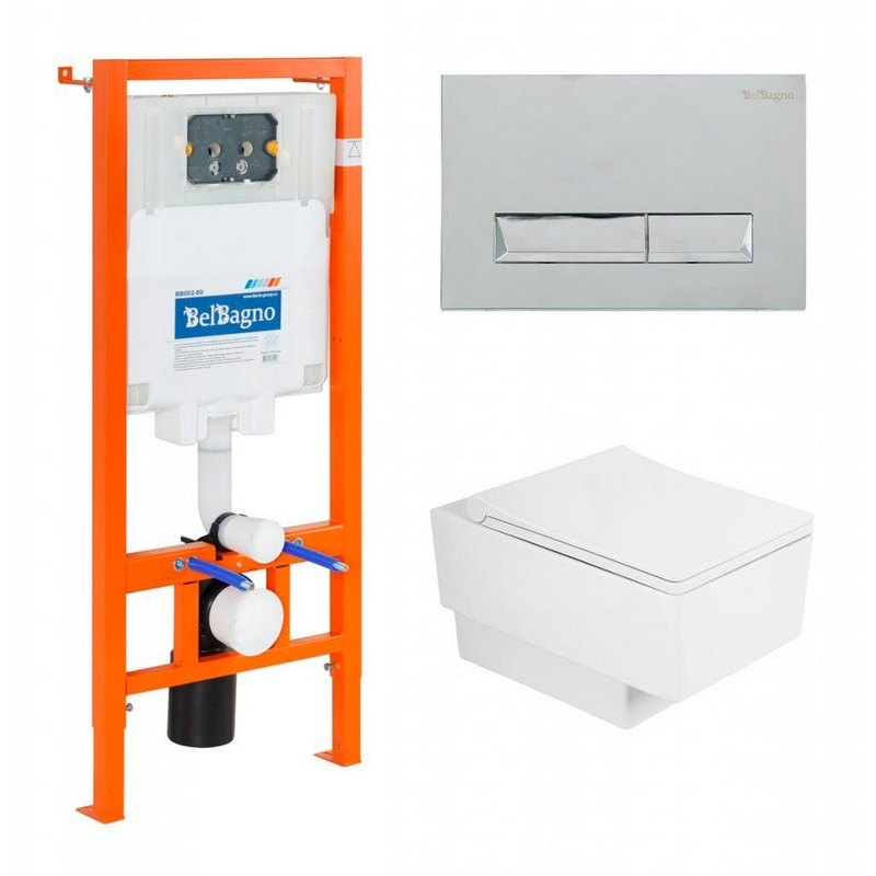 Инсталляция BelBagno Cadro Комплект: унитаз подвесной безободковый, сиденье с микролифтом, инсталляция для подв.унитаза, крепёж, клавиша смыва цв.хром, Belbagno+Cezares Cadro ZZ