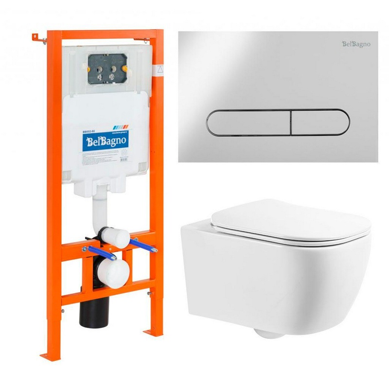 Инсталляция BelBagno Комплект: унитаз подвесной безободковый, сиденье с микролифтом, инсталляция для подв.унитаза, крепёж, клавиша смыва цв.хром, Genova ZZ