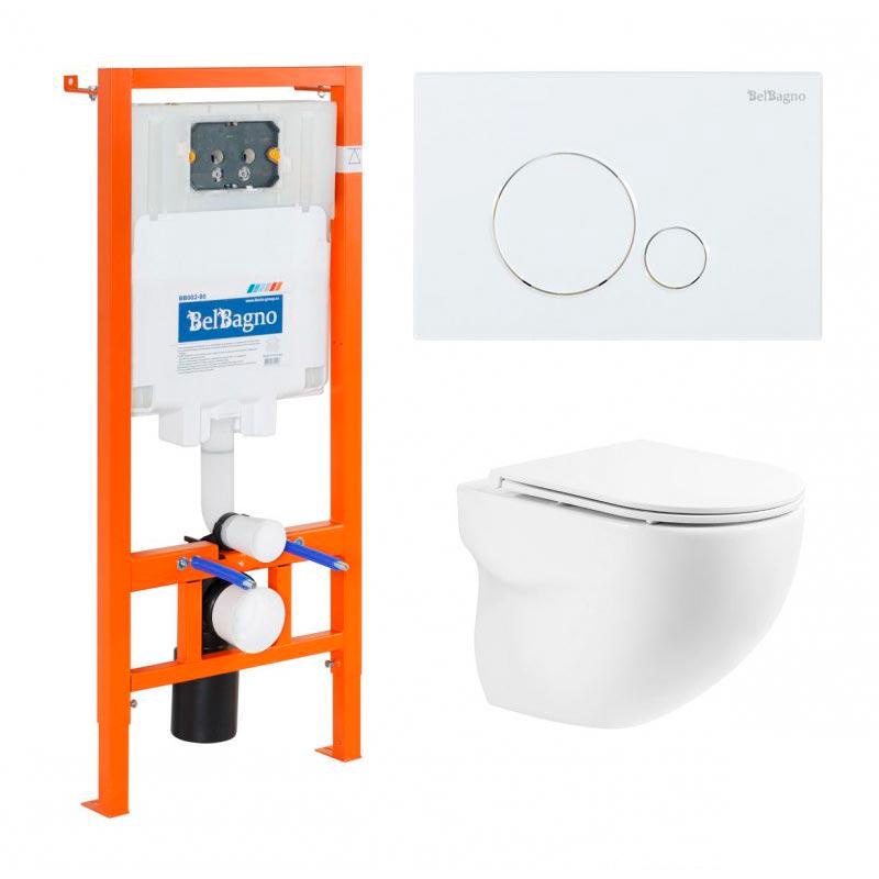 Комплект: унитаз подвесной безободковый, сиденье с микролифтом, инсталляция для подв.унитаза, крепёж, клавиша смыва цв.белый, ZZ BelBagno Onda BB066CHR/BB870SC/BB002-80/BB014-SR-BIANCO