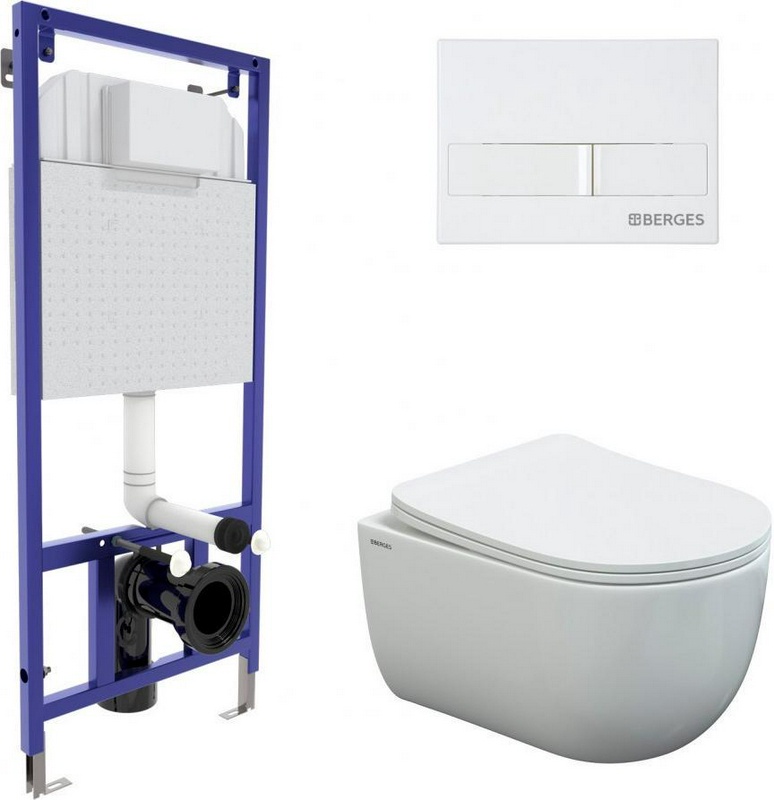 Инсталляция Berges Универсал Комплект: Унитаз подвесной VENTAS Rimless + сиденье с микролифтом Ventas Slim SO цв.белый+ инсталляция NOVUM525 +клавиша L1, цв.белый ZZ