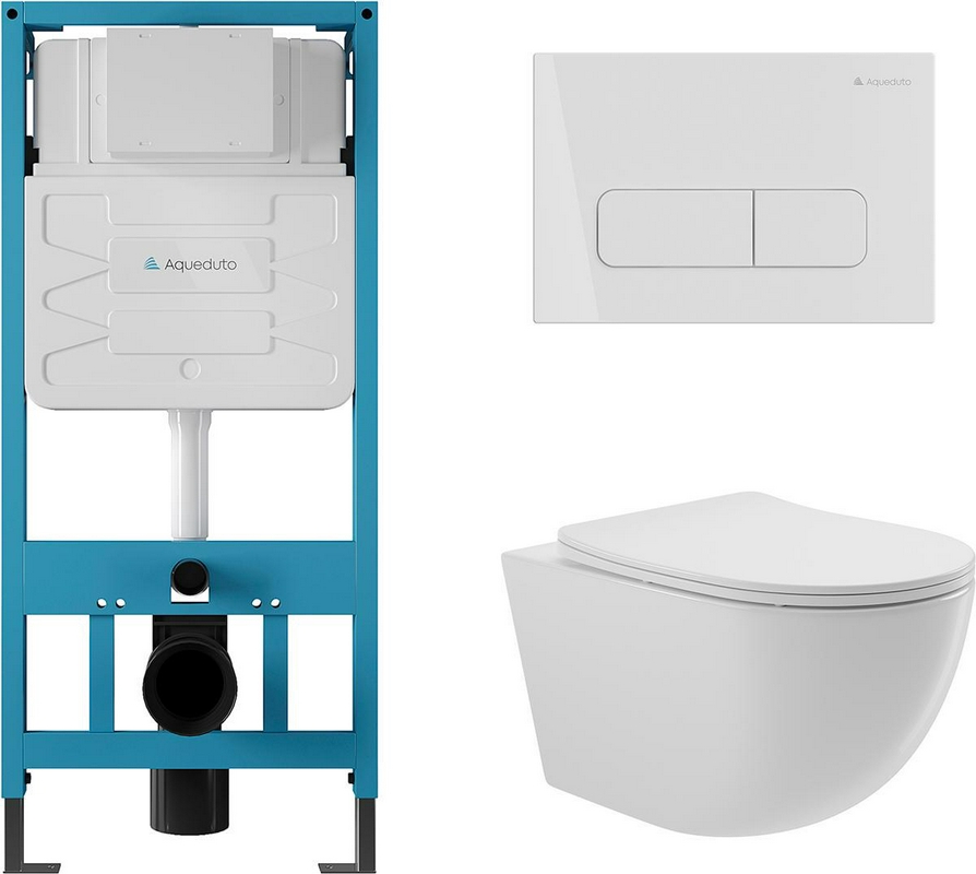 Комплект: унитаз подвесной безободковый, сиденье с микролифтом, инсталляция для подв.унитаза, крепёж, клавиша смыва цв.хром, Acqua ZZ