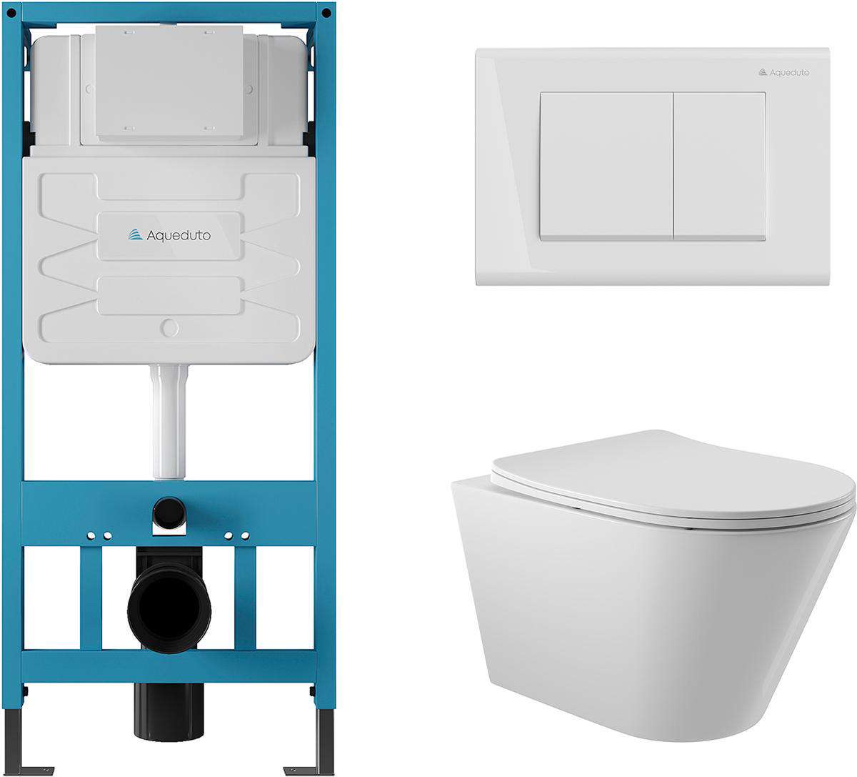Инсталляция Aqueduto Cone Компл.: унитаз подвесн.,безободк.,525х360мм,цв.белый глянц., сиденье с микролиф,,инстал. д/унит., крепёж, клавиша смыва Quadrado цв.белый гл., Cone ZZ