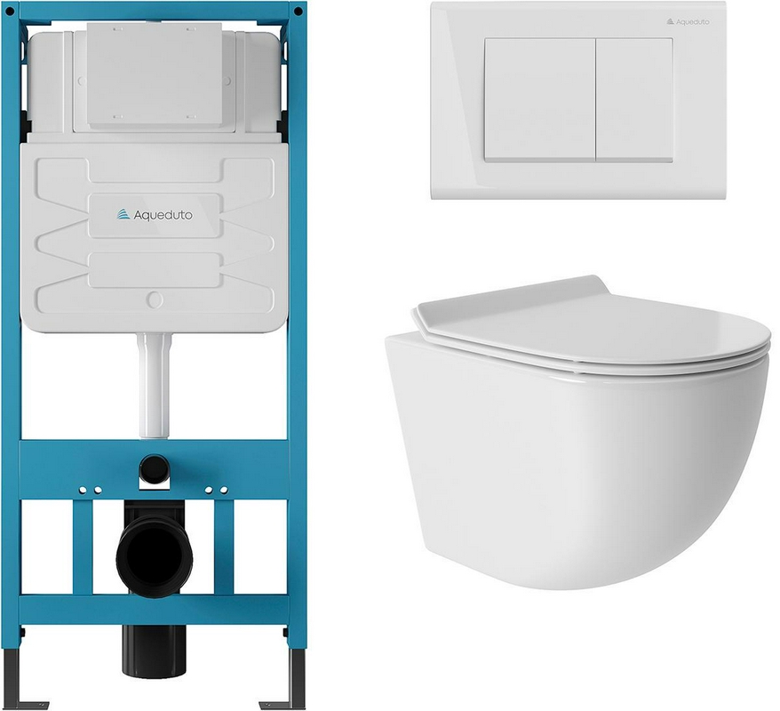 Комплект: унитаз подвесной безободковый, сиденье с микролифтом, инсталляция для подв.унитаза, крепёж, клавиша смыва цв.хром, Acqua ZZ