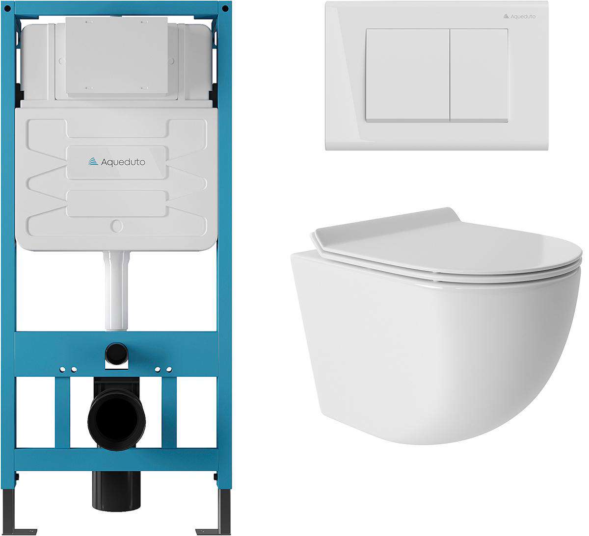 Инсталляция Aqueduto Ovo Компл.: унитаз подв..безободк,Tornado 490х360мм,цв.белый гл, сиденье с микролиф,,инстал. д/унит., крепёж, клавиша смыва Quadrado цв.белый гл., Ovo ZZ