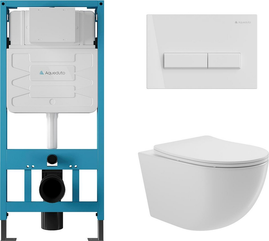 Комплект: унитаз подвесной безободковый, сиденье с микролифтом, инсталляция для подв.унитаза, крепёж, клавиша смыва цв.хром, Acqua ZZ