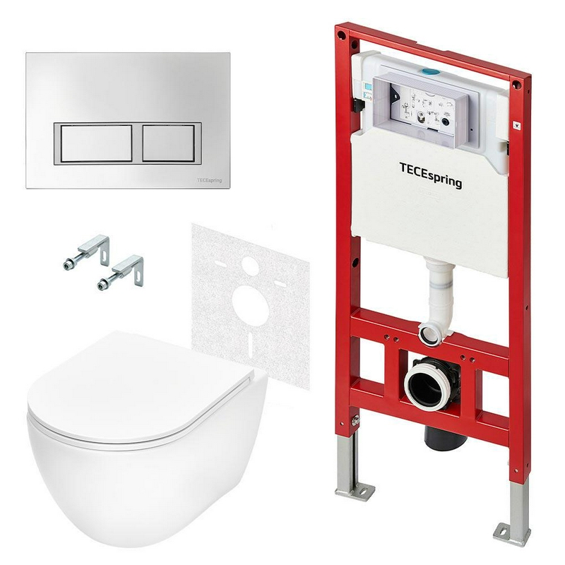 Комплект: унитаз подвесной, сиденье с микрол. S, застенный модуль д/подв.унитаза, крепёж, клавиша смыва цв.хром глянец, V ZZ Tece TECEspring K955201WCS