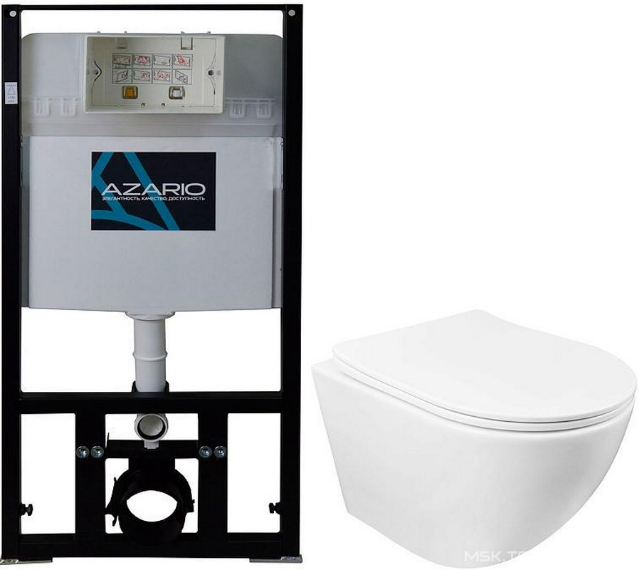 Инсталляция Azario Grado Сет: инсталяция + унитаз подвесной Grado безободковый + крышка-сиденье с микролифтом, цв. белый, ZZ