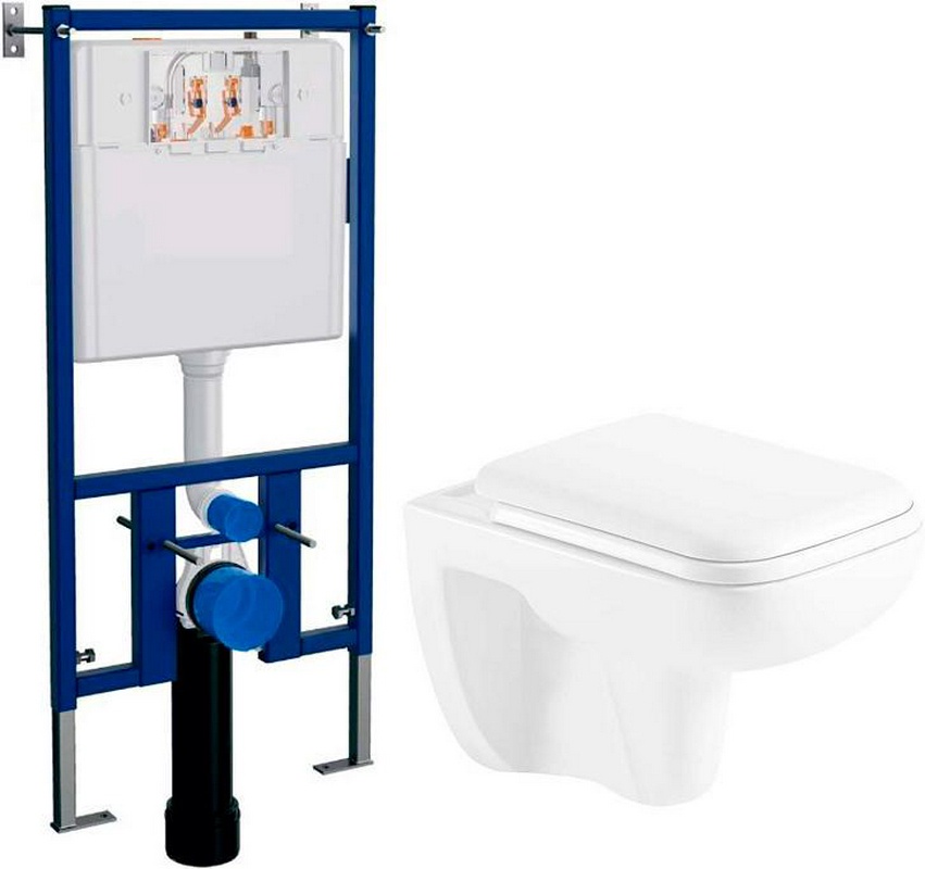 Инсталляция Azario Pavia Сет: инсталляция + унитаз подвесной Pavia безободковый + крышка-сиденье с микролифтом, БЕЗ клавиши ZZ