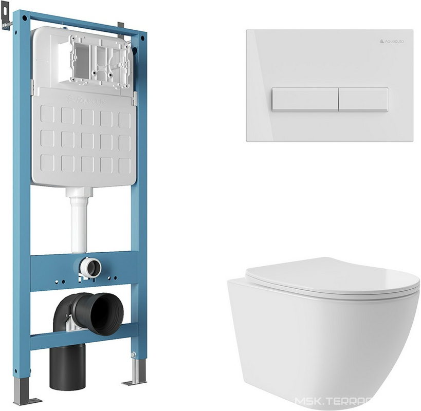 Компл.: унитаз подвесн,смыв Tornado,520х365мм,цв.белый глянц.,сиденье с микрол, инстал.д/унит,крепёж, клавиша смыв RETANGULO цв.белый гл., ZZ Aqueduto Ovo Plus AQDS128T