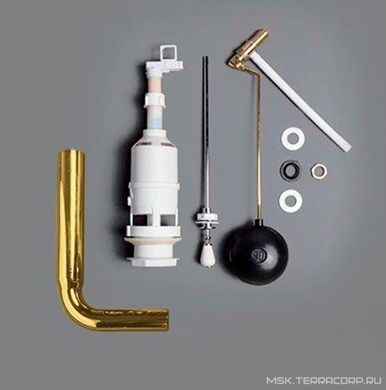 Механизм смыва, соединительная труба, боковая кнопка-рычаг смыва, для "Среднего" бачка арт.AR 812, LA28, LO 912, (цв. золото), Simas Simas Универсал D 11/ORO