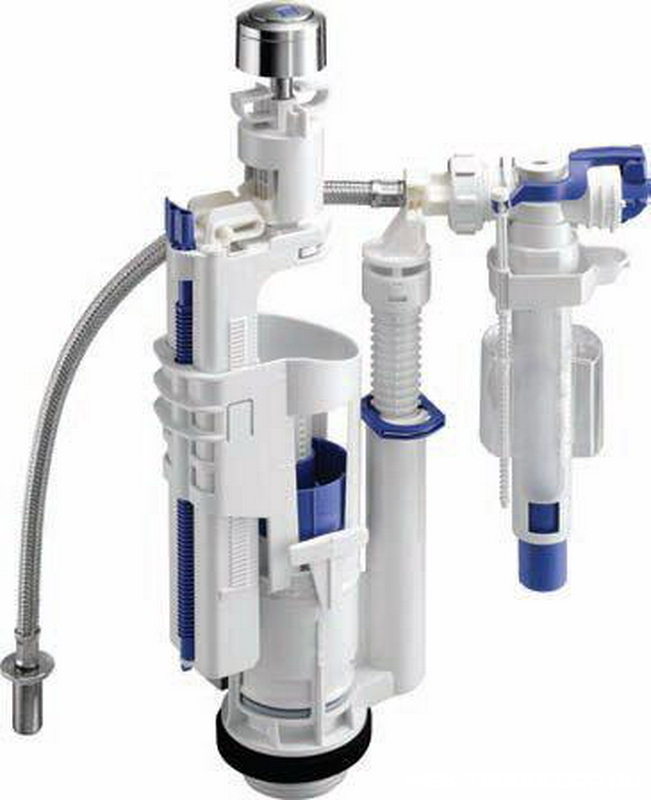 Двухрежимная арматура 3/6 л. для бачка, универсальная, нижний подвод 1/2, хром.кнопка, комплект