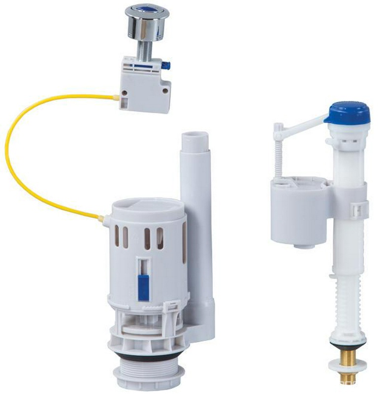 Двухрежимная арматура 3/6 л. для бачка, универсальная, нижний подвод 1/2, хром.кнопка, комплект