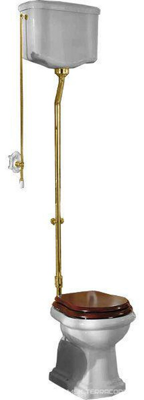 Унитаз с "Высоким" бачком 43х65хh220см,, выпуск в стену, БЕЗ сиденья (механизм,трубы,цепочка,кран подв.воды,крепл.к полу в ком. цв.золото), Lady