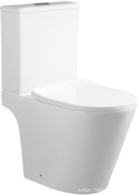 Унитаз-компакт напольный, безободковый, с бачком, 370х605мм, сиденье с микролифтом, крепеж в компл, (цв.белый глянц.), Nove