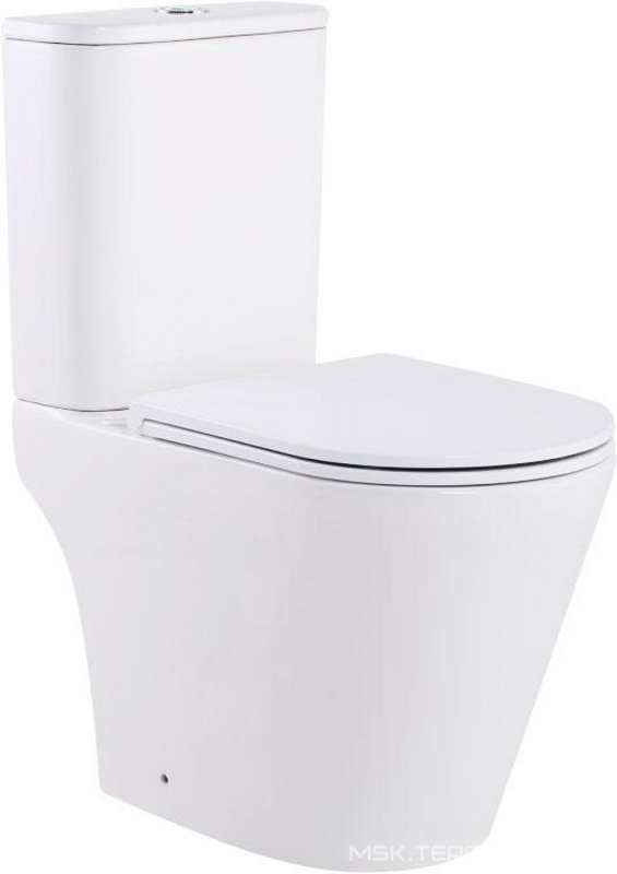 Унитаз напольный с бачком, безободковый, круговой смыв торнадо, цвет белый, с крышкой-сиденьем микролифт