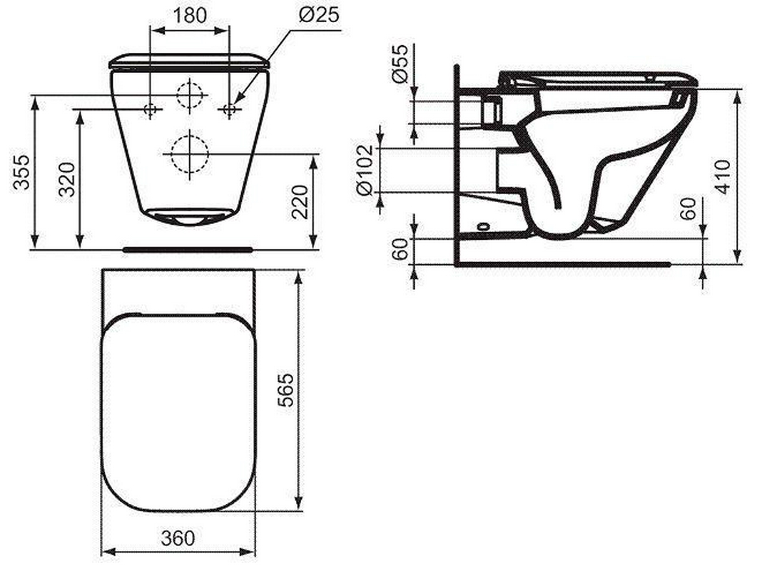 Унитаз подвесной Ideal Standard Tonic II Унитаз подвесной 360х565мм, глубокий смыв, скрытый монтаж (сидение с микролифтом арт.K7065 + креп. арт.TT0299327 в компл.),TONIC II ZZ