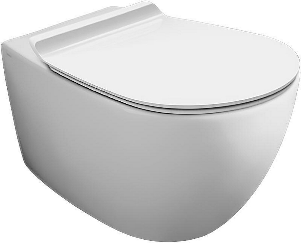 Унитаз подвесной 525х360мм, безободковый, сиденье с микролифтом, крепёж в компл., (цв.белый глянец), Ovo