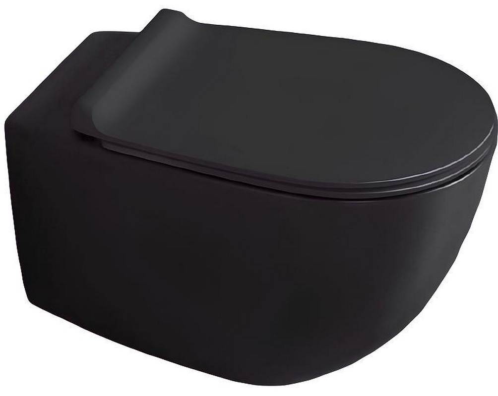 Унитаз подвесной, безободковый, 490x365x360мм, сиденье ультратонкое с микролифтом, крепеж в компл., (цв.черный матовый), Piatti ZZ