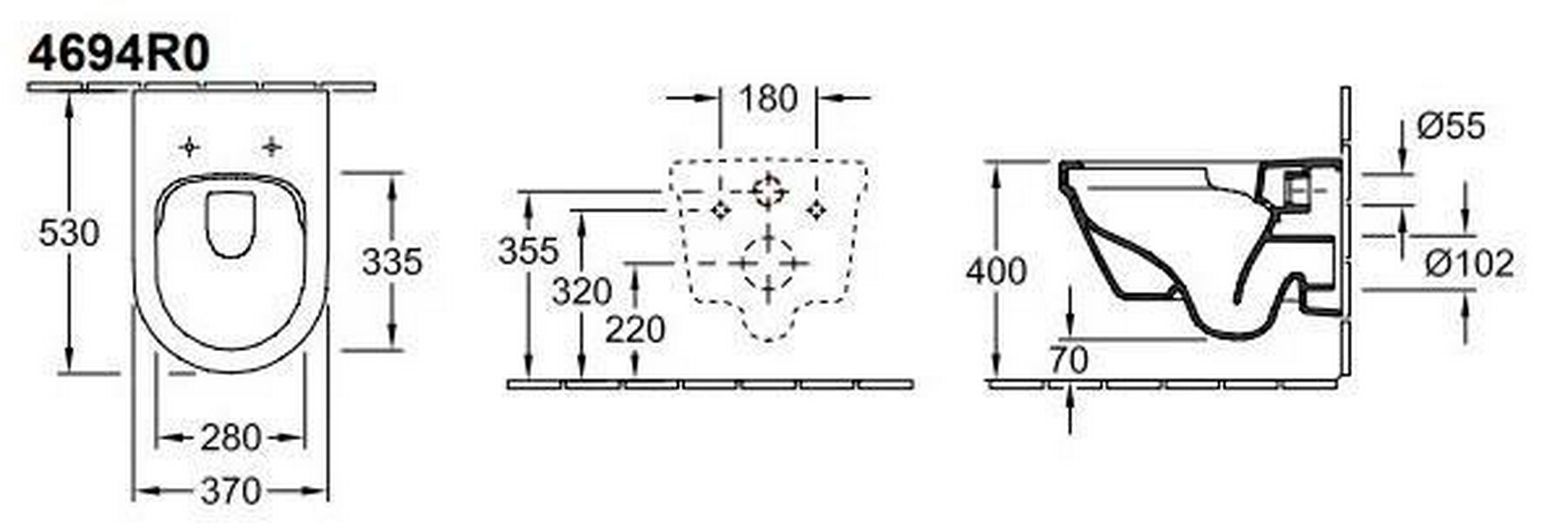 Унитаз подвесной, 375х560мм, с открытой кромкой смыва, крепёж в компл., без сиденья, (цв. R1 white ceramicplus), Venticello