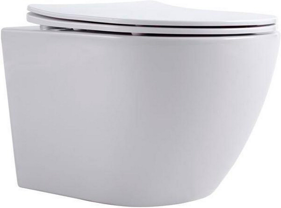 Унитаз подвесной 520х365мм, безободковый, смыв Tornado, сиденье с микролифтом, крепёж в компл., (цв.белый глянец), Ovo Plus