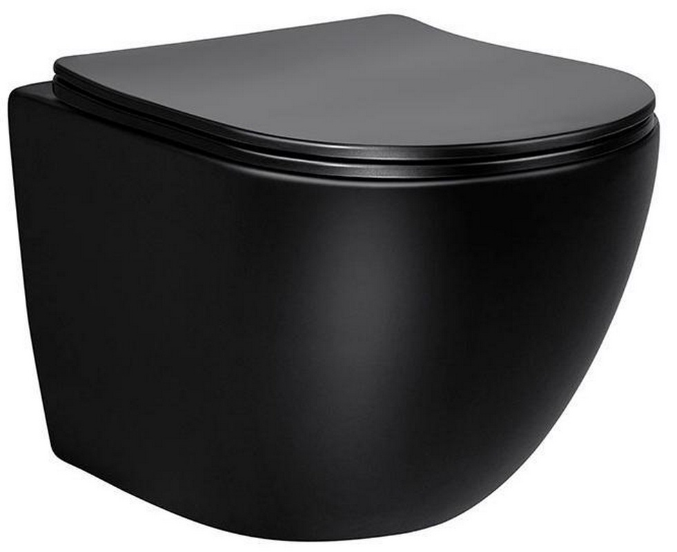 Унитаз подвесной безободковый Metropol 49x36.5x39 см, черный матовый, крышка-сиденье с микролифтом в комплекте ZZ