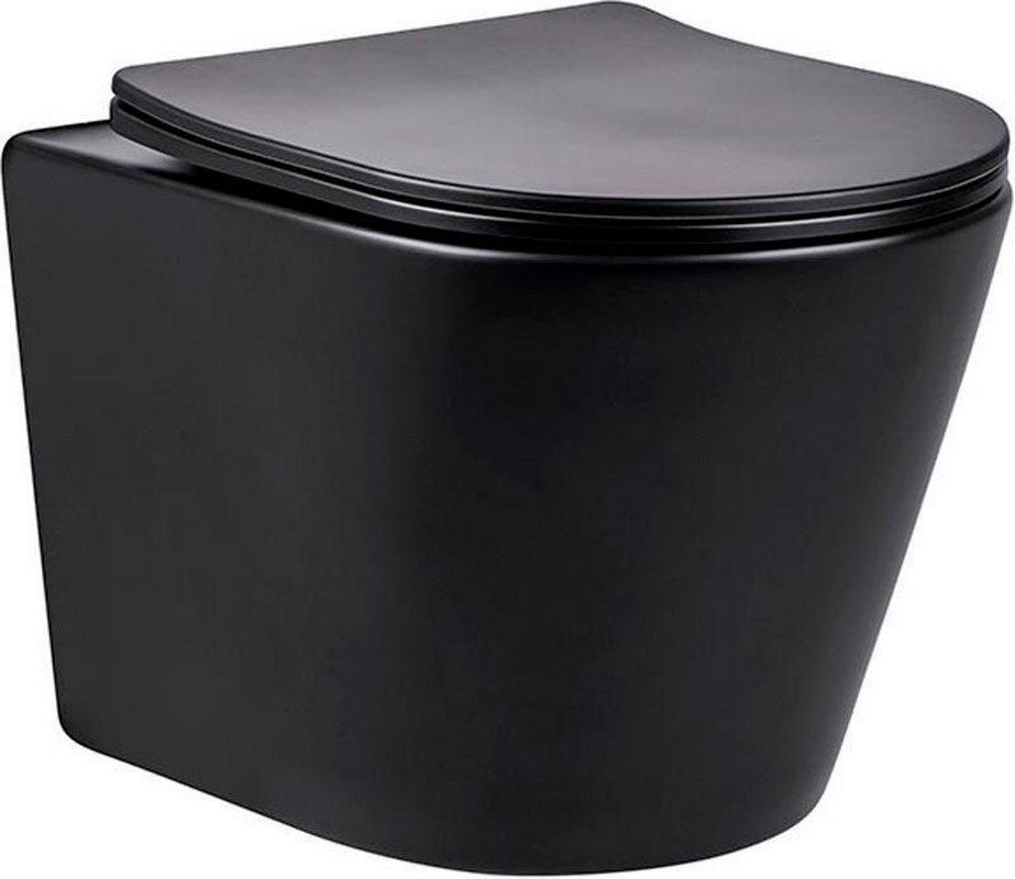 Унитаз подвесной 525х360мм, безободковый, сиденье с микролифтом, крепёж в компл., (цв.черный матовый), Ovo
