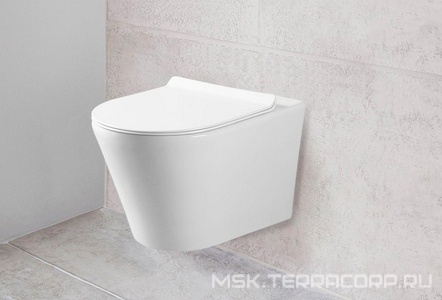 Унитаз подвесной 520х370мм, безободковый, сиденье с микролифтом, крепёж в компл., (цв.белый матовый), Macio