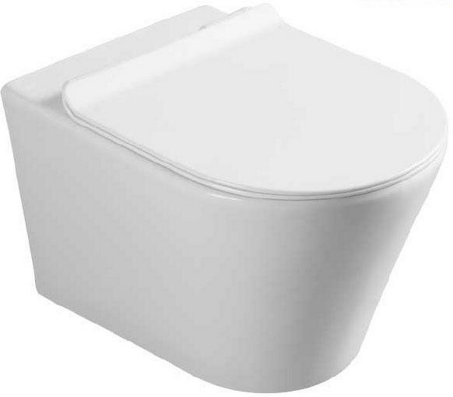 Унитаз подвесной 525х360мм, безободковый, сиденье с микролифтом, крепёж в компл., (цв.белый глянец), Ovo