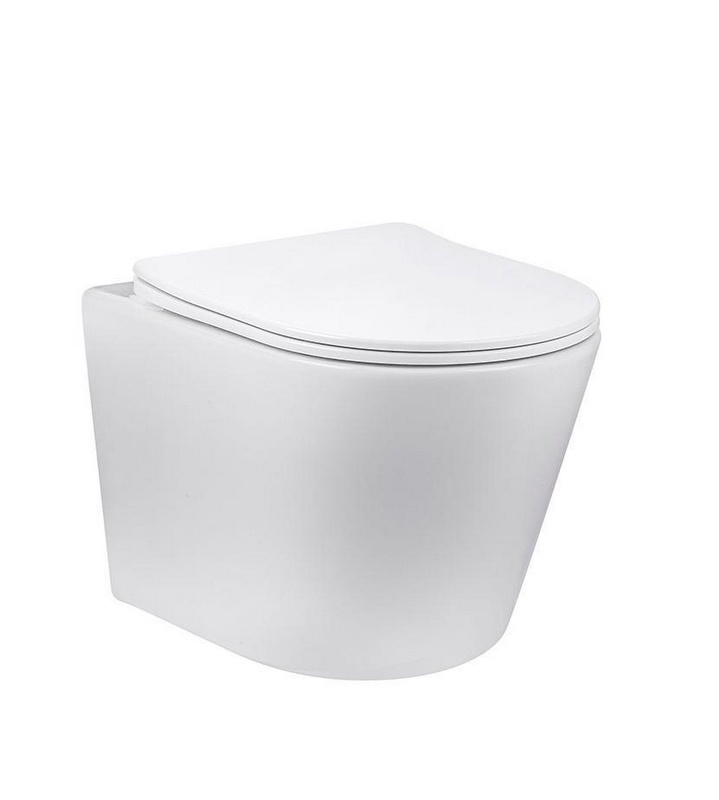Унитаз подвесной 480х360мм, безободковый, смыв Tornado, сиденье с микролифтом, крепёж в компл., (цв.белый глянец), Ovo