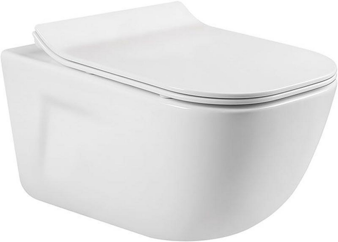 Унитаз подвесной 525х360мм, безободковый, сиденье с микролифтом, крепёж в компл., (цв.белый глянец), Ovo