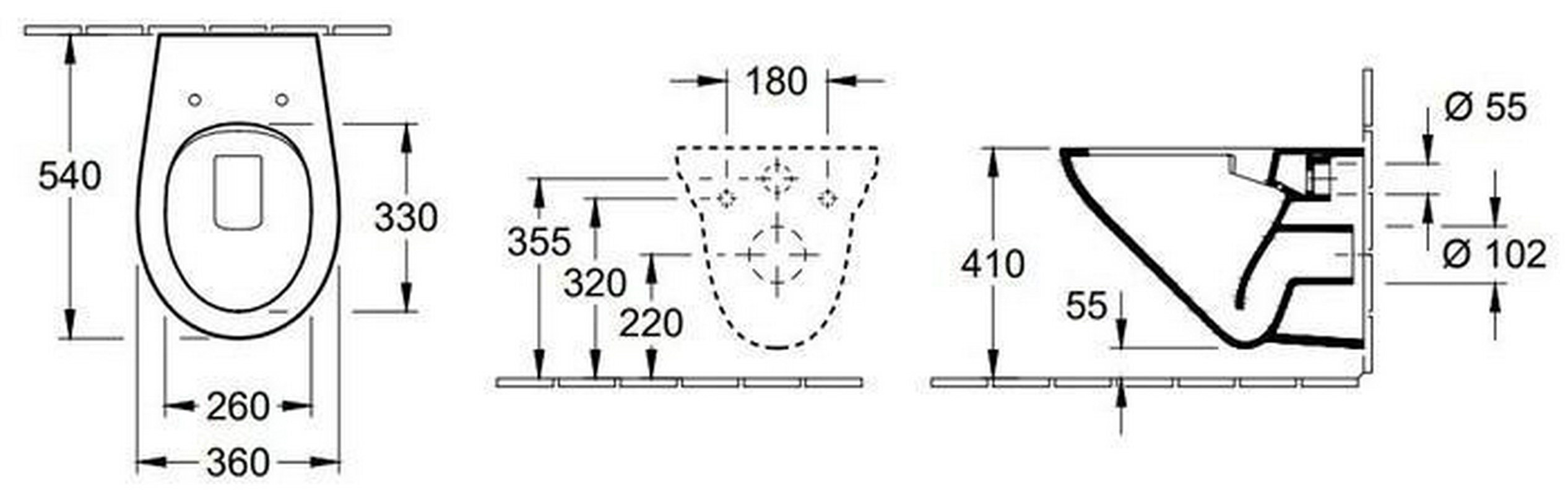 Унитаз подвесной Villeroy & Boch O.Novo Унитаз подвесной 360х540мм, безободковый, без сиденья, (цв. 01 белый), O.Novo ZZ