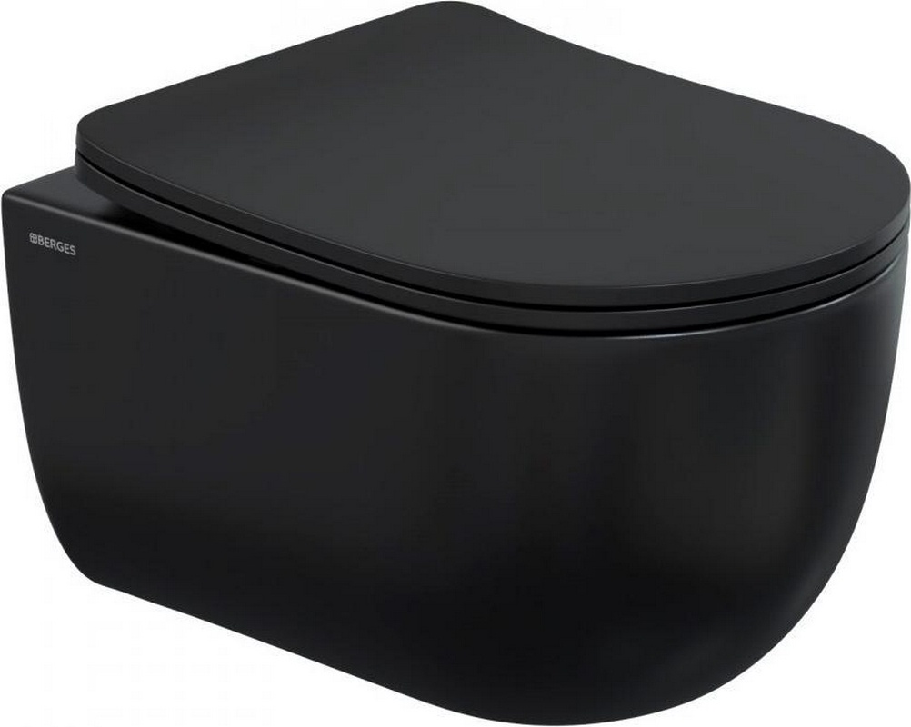 Унитаз подвесной Berges VENTAS Подвесной унитаз c крышкой-сиденьем микролифт, безободковый, цв.черный KL