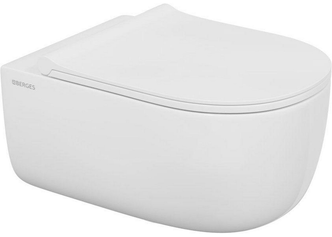 Унитаз подвесной Berges Ego Подвесной унитаз,c крышкой-сиденьем микролифт, безободковый, цв.белый, ZZ