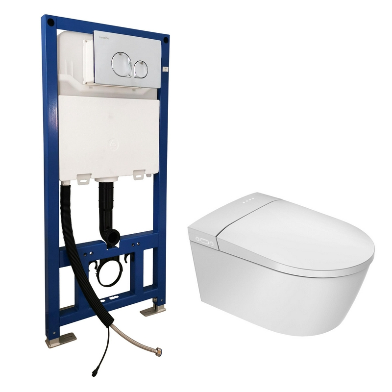 Унитаз подвесной Swedbe Smart Унитаз-биде подвесной 380х598мм, электроное, сиденье с подогревом, пульт ДУ, инсталляция, клавиша цв.хром в компл., Smart ZZ