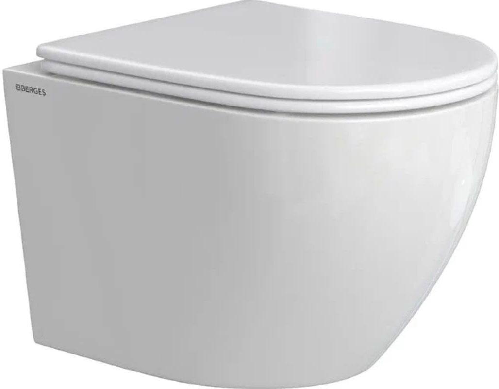 Унитаз подвесной Berges OKUS Подвесной унитаз, c крышкой-сиденьем дюропласт, микролифт, безободковый, цв.белый, KL