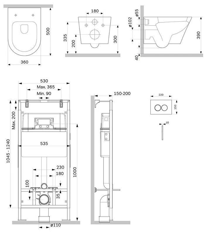 Унитаз подвесной AMPM Sense Унитаз подвесной с инсталляцией Sense безободковый, сиденьем микролифт, механ. клавишей, белый ZZ