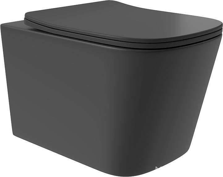 Унитаз подвесной Aqueduto Macio Plus Унитаз подвесной 525х345мм, безободковый, смыв Tornado, сиденье с микролифтом, крепёж в компл., (цв.черный матовый), Macio Plus ZZ