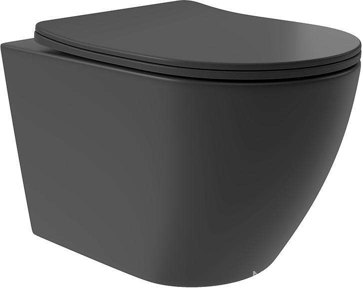 Унитаз подвесной Aqueduto Ovo Plus Унитаз подвесной 520х365мм, безободковый, смыв Tornado, сиденье с микролифтом, крепёж в компл., (цв.черный матовый), Ovo Plus ZZ