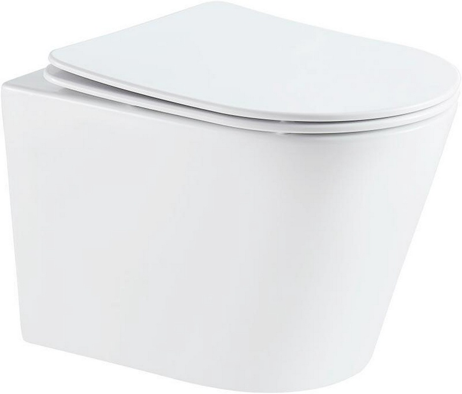 Унитаз подвесной 480х360мм, безободковый, смыв Tornado, сиденье с микролифтом, крепёж в компл., (цв.белый глянец), Ovo