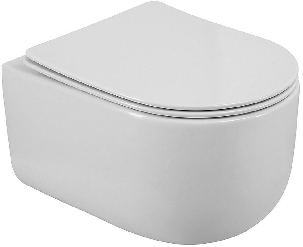 Унитаз подвесной 525х360мм, безободковый, сиденье с микролифтом, крепёж в компл., (цв.белый глянец), Ovo