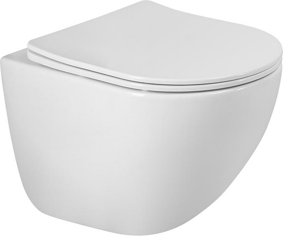 Унитаз подвесной 480х360мм, безободковый, смыв Tornado, сиденье с микролифтом, крепёж в компл., (цв.белый глянец), Ovo